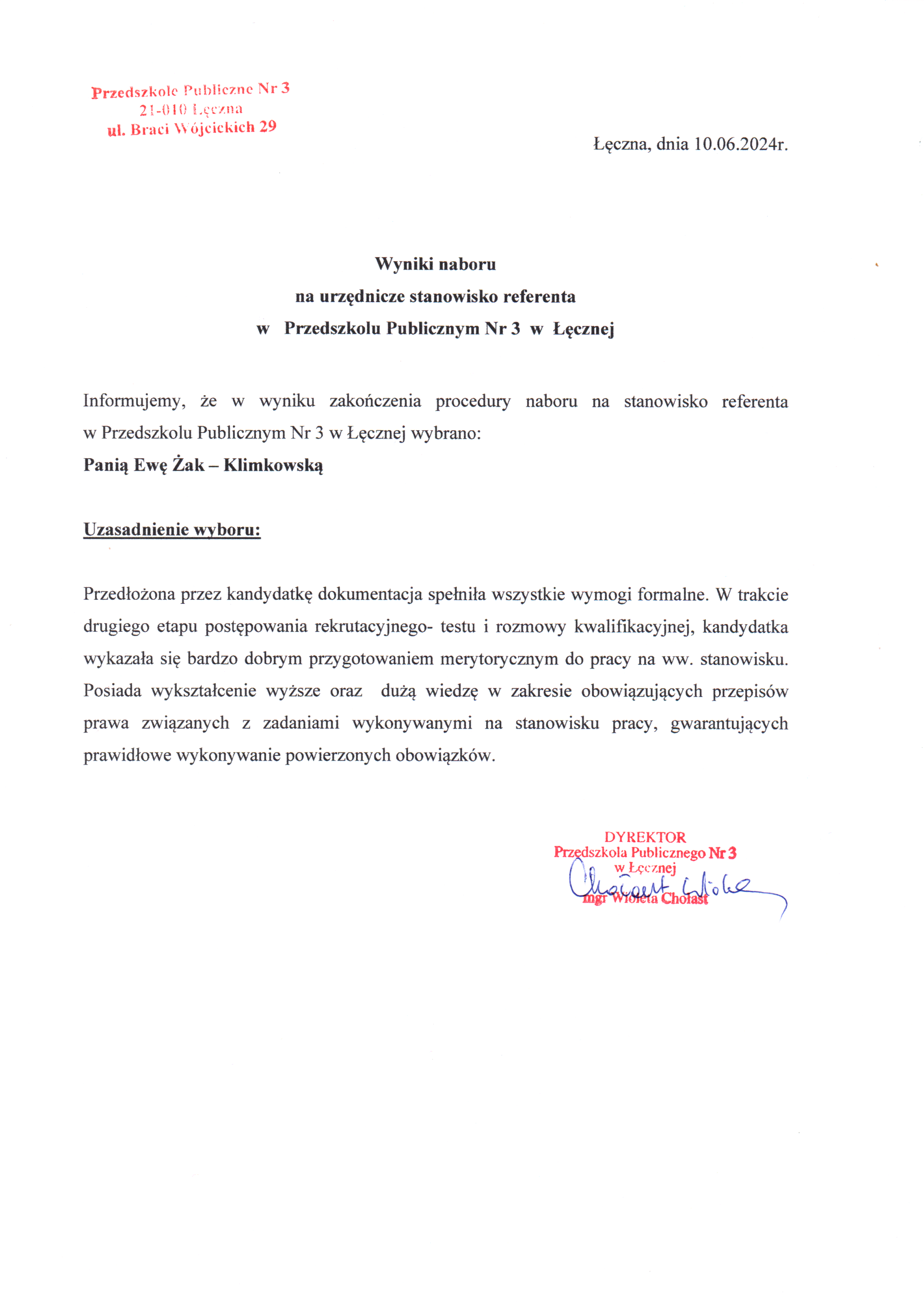 w gabinecie dyrektora Przedszkola Publicznego nr 3 w Łęcznej ul. Braci Wójcickich 29, 21-010 Łęczna lub pocztą tradycyjną na wymieniony wyżej adres. Dokumenty, które wpłyną do Przedszkola po upływie tego terminu nie będą rozpatrywane.